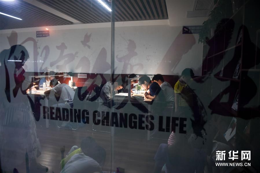 8月2日,读者在岳西县古岳书房夜读。 7月22日开始营业的安徽省岳西县古岳书房,以岳西县图书馆的馆藏资源为依托,为读者提供24小时不打烊服务,还提供免费借阅服务和自习场所,让大山里的读者享受到便捷的阅读服务。 新华社记者 张端 摄