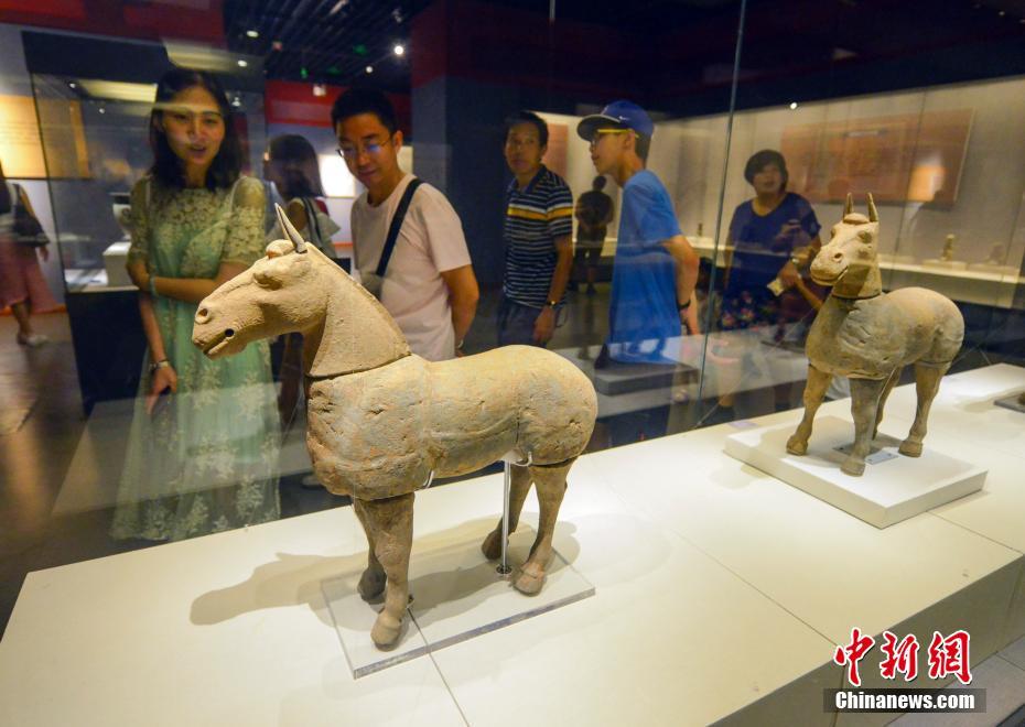 8月3日,正在新疆博物馆展出的“解忧故里——徐州汉代楚国精品文物展”,出土于徐州羊鬼山陪葬坑的陶马吸引参观者。据介绍,本次展览共展出徐州博物馆馆藏的117件汉代精品文物,分和亲万里、制如京师、勇兵锐器、奢华器用、永生之梦5个单元,令到场参观者重温解忧故里的汉代历史。中新社记者 刘新 摄