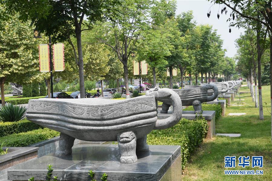 位于曲沃东城新区的晋园内的水匜(7月26日摄)。