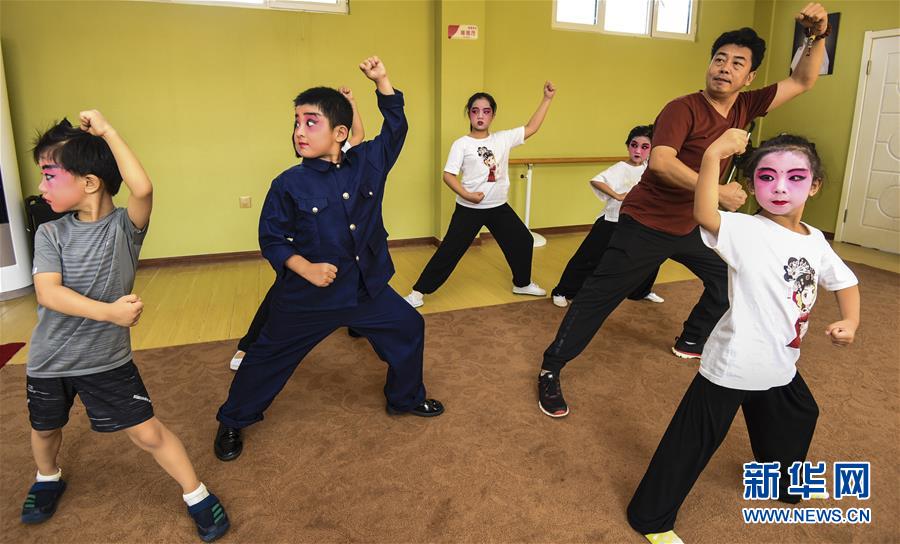 暑假期间,河北霸州翰墨青衣国粹艺术中心举办京剧公益讲堂活动,通过定期聘请专业教师,免费为青少年提供学习京剧的平台,丰富暑期生活。 新华社记者 李晓果 摄
