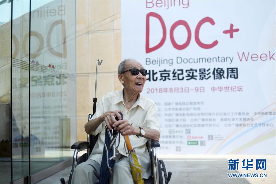 8月3日,第二届北京纪实影像周开幕影片《我的时代和我——许渊冲篇》的主人公许渊冲出席开幕式。 新华社记者金良快摄