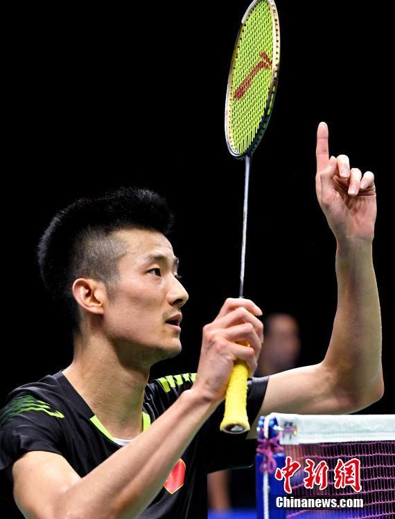 8月3日,2018年世界羽毛球锦标赛第五比赛日在南京进行,男单1/4决赛上演“双龙会”,中国选手谌龙2:0战胜丹麦选手、赛会头号种子安赛龙(Viktor Axelsen),晋级四强。图为谌龙庆祝胜利。中新社记者 侯宇 摄