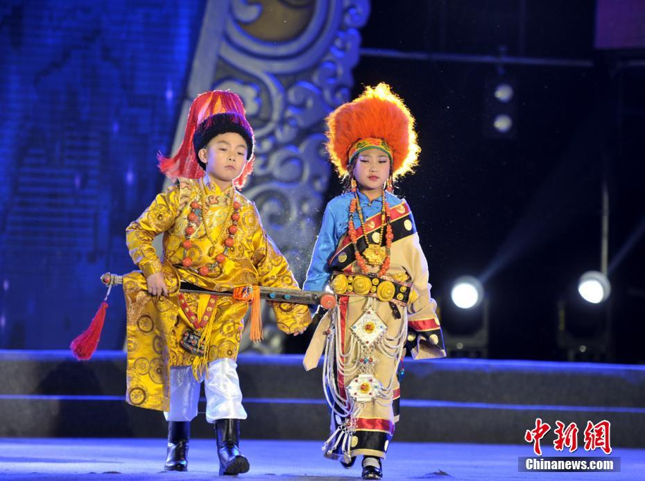 8月3日晚,四川理塘县一群藏族小帅哥和小美女带来了一场精彩的藏族服饰秀,小朋友们穿着漂亮的藏装现场刮起了“最炫民族风”,引台下观众掌声、喝彩声不断。 刘忠俊 摄