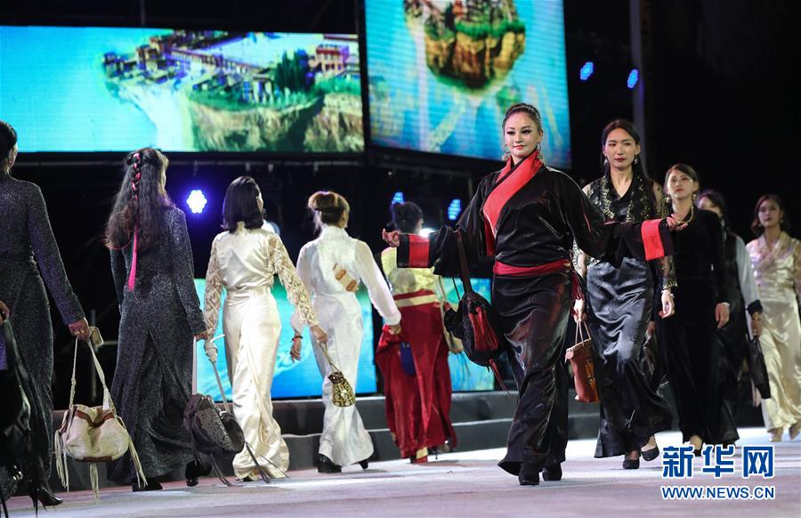 8月4日,模特在展示新式藏装。 8月4日,四川省理塘县在康南运动中心举办康巴传统和新式藏装秀,来自当地的模特展示了多彩的康巴藏式服装,演绎了一场传统与时尚的碰撞。康巴服饰以其夸张的形制、明朗的色彩、古朴的纹饰、厚重的质地等,形成了独具地域文化的鲜明特色。 新华社记者 江宏景 摄
