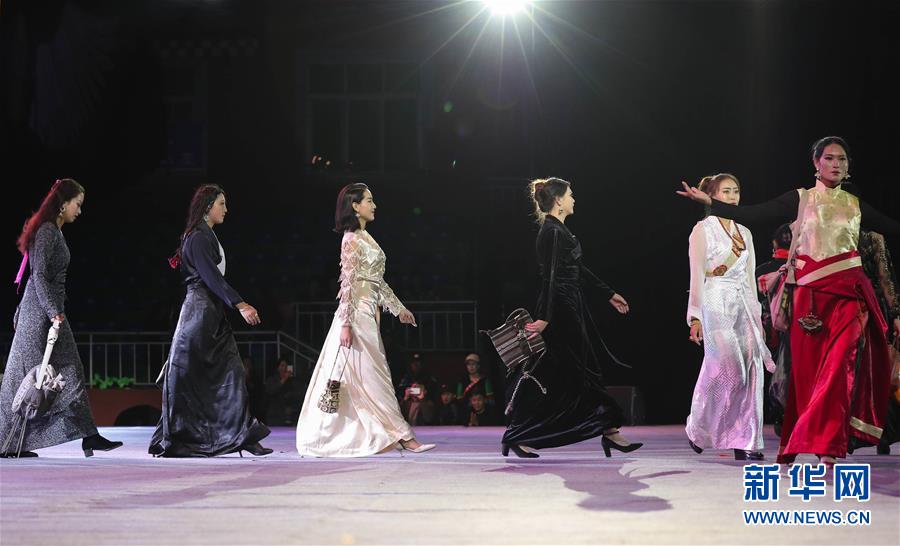 8月4日,模特在展示新式藏装。 8月4日,四川省理塘县在康南运动中心举办康巴传统和新式藏装秀,来自当地的模特展示了多彩的康巴藏式服装,演绎了一场传统与时尚的碰撞。康巴服饰以其夸张的形制、明朗的色彩、古朴的纹饰、厚重的质地等,形成了独具地域文化的鲜明特色。 新华社记者 江宏景 摄