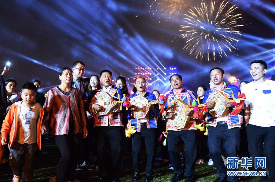 8月5日,在云南楚雄市太阳历文化园,来自全国各地的游客与彝族同胞一起欢歌起舞,欢度火把节。8月5日,全国多地的彝族同胞举行多彩的民族特色活动,欢庆火把节。新华社发(谢子艺 摄)