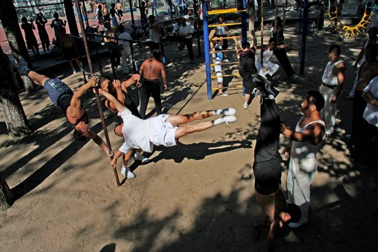 2008年8月24日,天津市河北区,公园里健身的人群。程子/摄