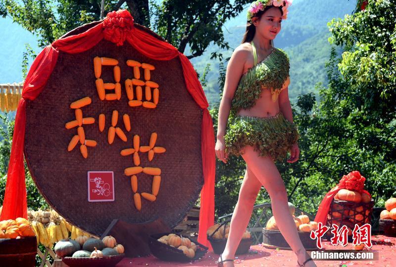 江西古村庆立秋 模特穿“蔬菜比基尼”走秀吸睛