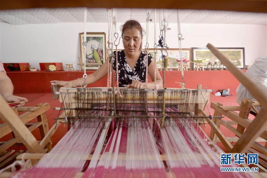 8月8日,河北省沙河市白塔镇塔子峪村村民在制作四匹缯布。 近年来,地处河北省南部的沙河市农村中又响起了织布机声。当地居民用传统纺车、纺织机,手工纺织枣花、宝莲灯、石榴花等近百种花色的四匹缯布,制成家纺、服饰等产品,热销河北省内外市场。 沙河四匹缯布制作技艺是河北省级非遗项目,历史悠久、工艺复杂,是沙河市民间流传的传统土布织造手艺,因编制过程中使用四匹缯来分辨经线的格式,故称四匹缯布。四匹缯布用多种颜色的经纬线编织而成,织成的布色彩艳丽、花样精致、质朴美观、结实耐用。近年来,沙河市纺织从业者重拾四匹缯制作技艺,将这项传统民间纺织艺术瑰宝发扬光大。 新华社发(陈雷 摄)