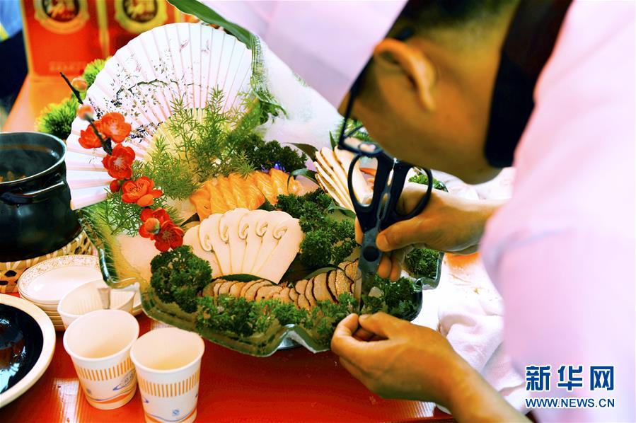 8月8日,在野生菌美食大赛决赛现场,选手在制作参赛的菜品。