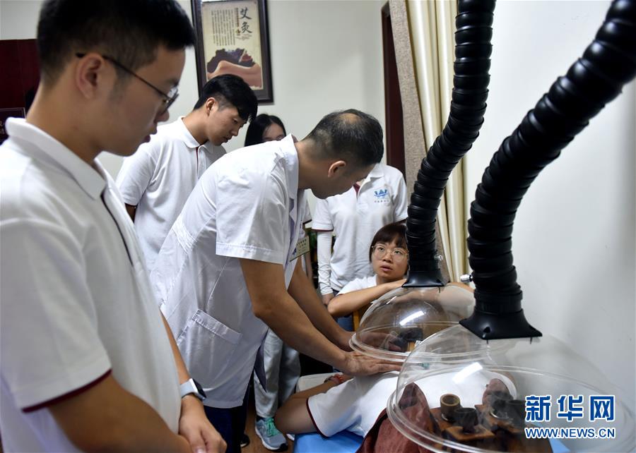 8月9日,中医师在向香港大学生讲解传统艾灸技法。 新华社发(张建成 摄)