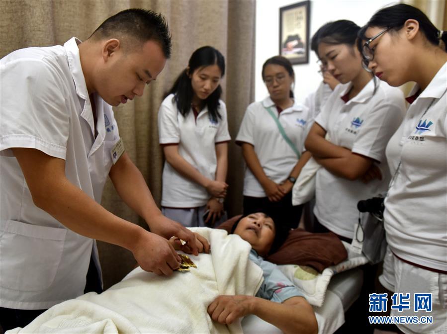 8月9日,中医师在向香港大学生讲解传统手法推拿技术。 新华社发(张建成 摄)