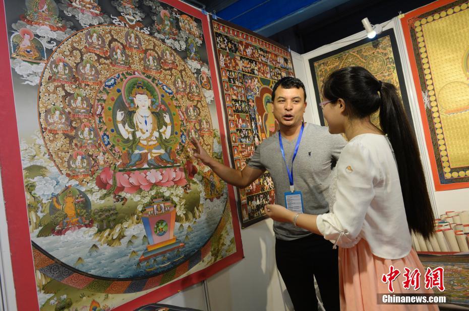 8月10日,尼泊尔唐卡服饰引人关注。当日,第三届内蒙古自治区文化产业博览交易会在呼和浩特开幕,来自意大利、法国、英国、德国、西班牙、俄罗斯等20余个国家的服饰、绘画、新科技等展品悉数亮相。 中新社记者 刘文华 摄