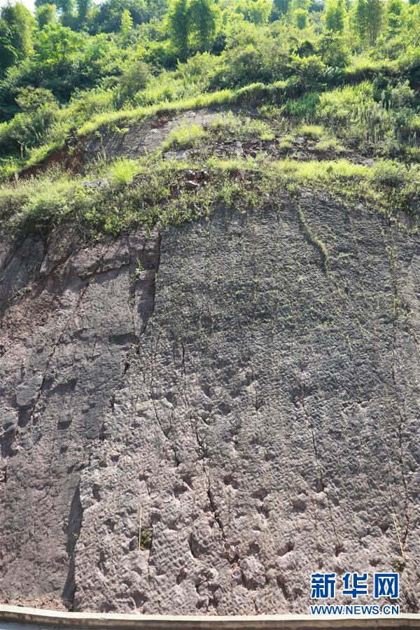 贵州省茅台镇一酒厂内的蜥脚类恐龙足迹群(2017年8月11日摄)。 新华社发