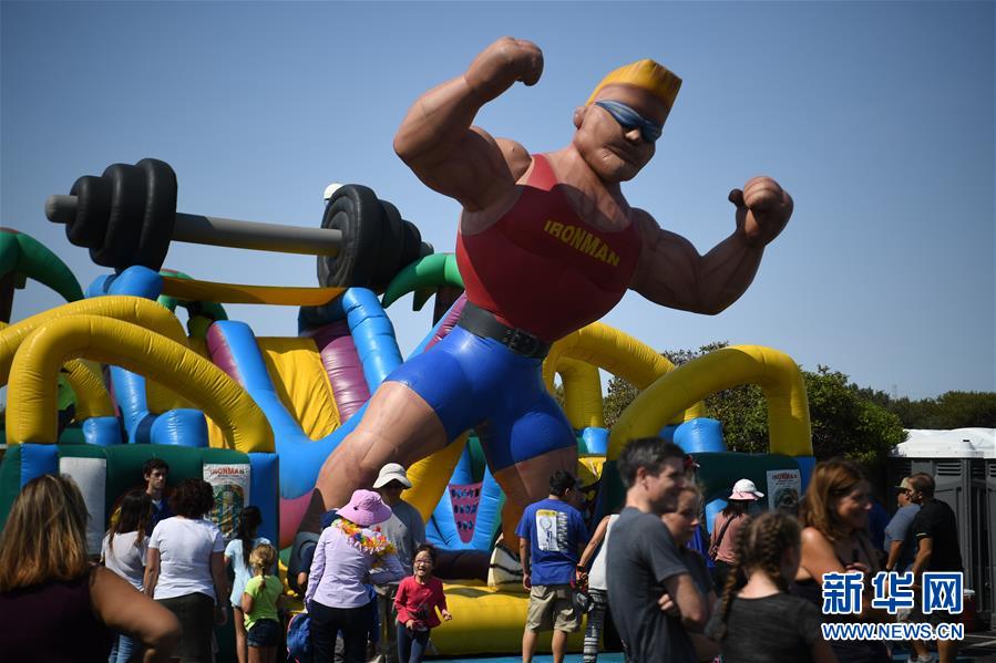 8月11日,在美国旧金山湾区,人们在“脸书节”的游戏区游玩。 当日,旧金山湾区脸书园区举行“脸书节”,人们在活动中欣赏文艺表演,品尝美食,乘坐游乐设施等,活动收入将捐给慈善团体。 新华社记者吴晓凌摄