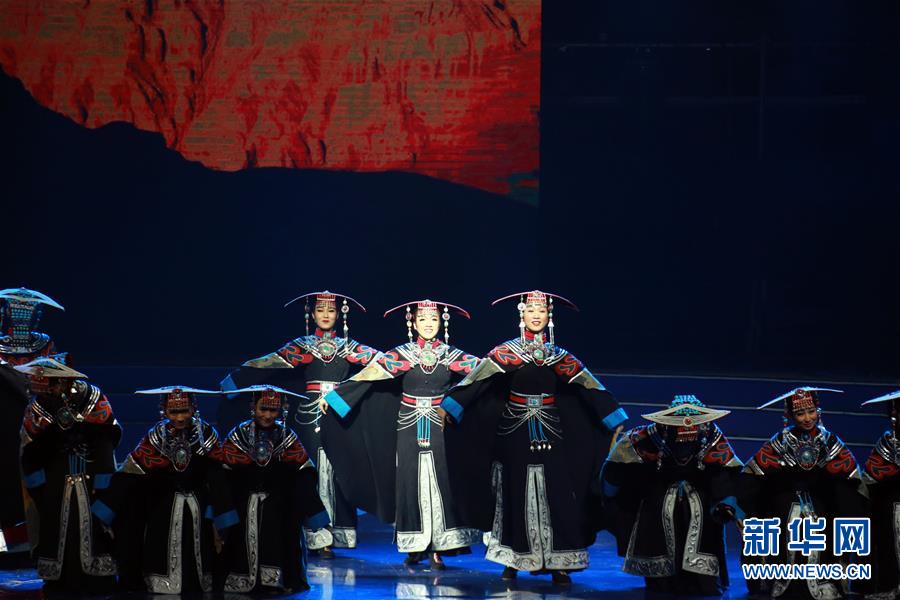 8月13日,中央民族大学舞蹈学院学生在表演原创西藏舞蹈《梦宣》。 新华社记者 潘旭 摄
