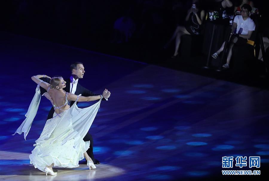 8月19日,舞蹈演员在黑池舞蹈节开幕式上表演。 当日,2018黑池舞蹈节(中国)在上海揭幕,来自20多个国家和地区的3000多名选手将在为期7天的舞蹈比赛中展开角逐。 新华社记者 陈飞 摄