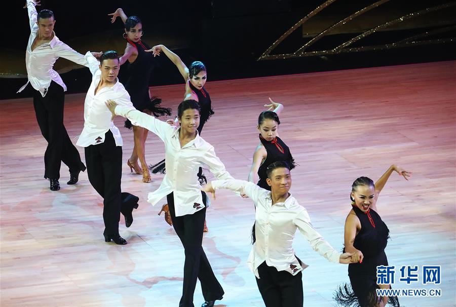 8月19日,舞蹈演员在黑池舞蹈节开幕式上表演。 当日,2018黑池舞蹈节(中国)在上海揭幕,来自20多个国家和地区的3000多名选手将在为期7天的舞蹈比赛中展开角逐。 新华社记者 陈飞 摄