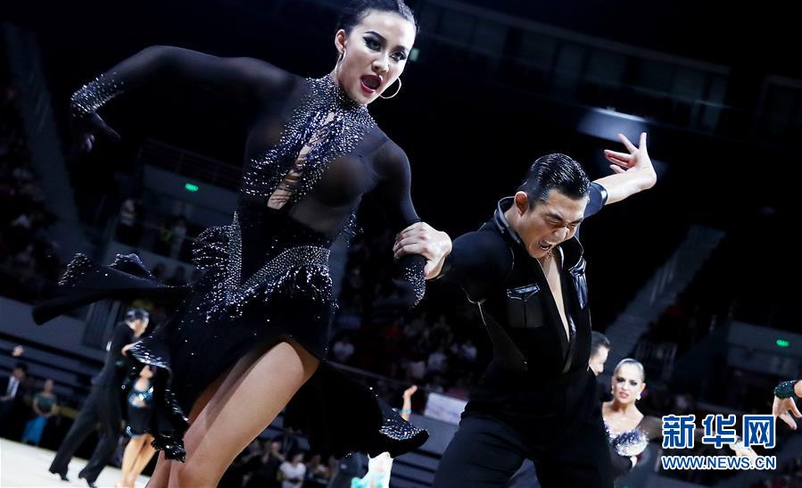 8月20日,一对拉丁舞选手在比赛中表演。 当日,在上海宝山体育中心举行的2018黑池舞蹈节(中国)进行国际公开职业组拉丁舞和摩登舞两项重量级比赛。 新华社记者 方喆 摄