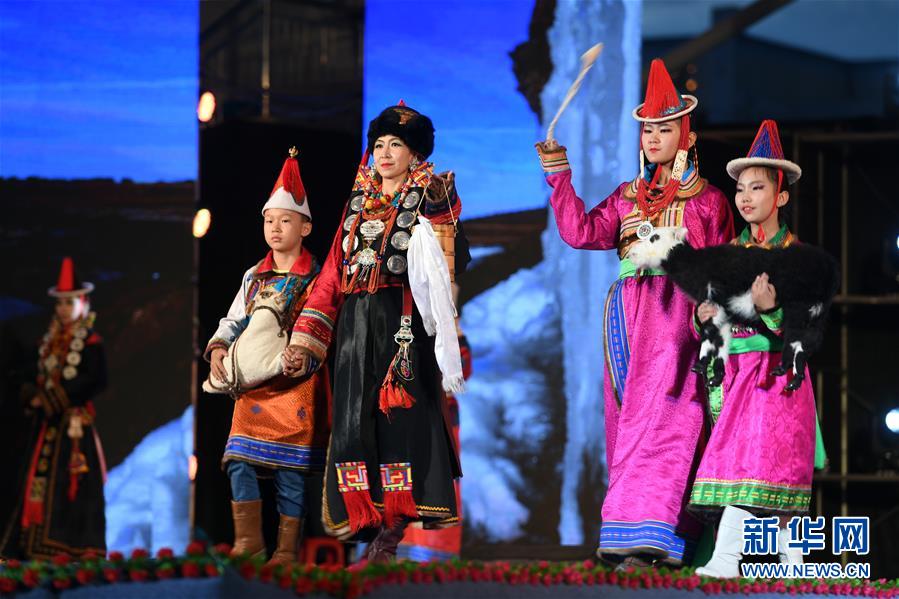 8月20日,在肃北蒙古族自治县文化体育广场,肃北县娜仁蒙古族服饰队登台亮相。 当日,第二届“丝绸之路那达慕”文化旅游节之八省区蒙古族服饰艺术节在甘肃省肃北蒙古族自治县拉开帷幕,来自内蒙古、青海、新疆、甘肃等地的十支代表队共计120多名选手身着多姿多彩的蒙古族服饰在舞台上亮相。 新华社记者 范培珅 摄