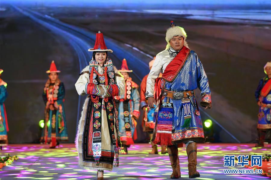 8月20日,在肃北蒙古族自治县文化体育广场,青海省海西蒙古族藏族自治州服饰队登台亮相。 当日,第二届“丝绸之路那达慕”文化旅游节之八省区蒙古族服饰艺术节在甘肃省肃北蒙古族自治县拉开帷幕,来自内蒙古、青海、新疆、甘肃等地的十支代表队共计120多名选手身着多姿多彩的蒙古族服饰在舞台上亮相。 新华社记者 范培珅 摄