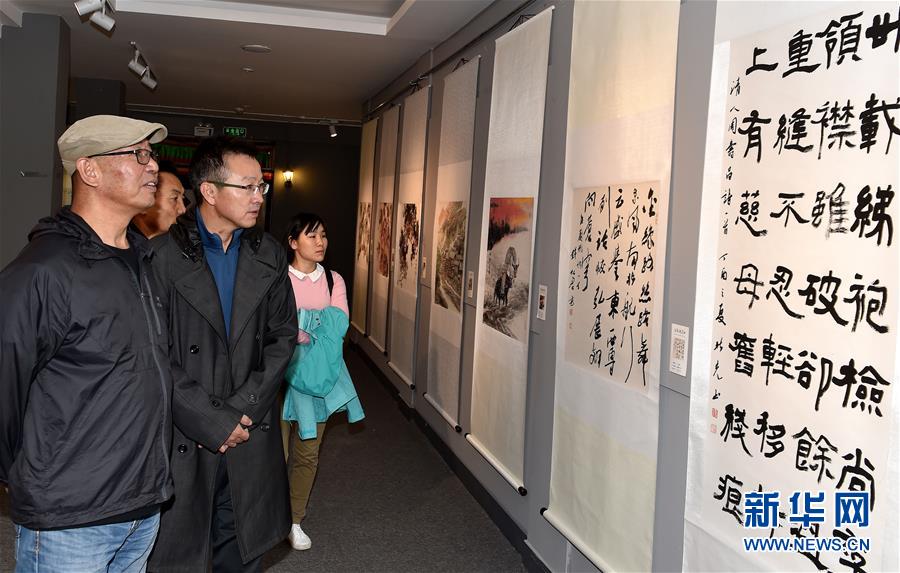8月21日,观众在“风起澜沧江”展览上欣赏作品。 当日,“风起澜沧江”西南少数民族题材美术、书法作品展在拉萨开展,展出反映西南少数民族传统文化、地域特征、民俗风情等方面的作品近百幅。 新华社记者 觉果 摄