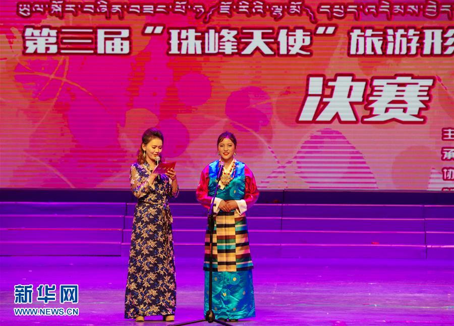 8月22日,在西藏日喀则,选手(右)参加第三届“珠峰天使”旅游形象大使评选大赛决赛。 当晚,第三届“珠峰天使”旅游形象大使评选大赛决赛在日喀则剧院举行。活动旨在评选出最具日喀则特质的旅游形象代言人,以展示日喀则丰富的旅游资源和良好的旅游形象。 新华社记者 刘东君 摄
