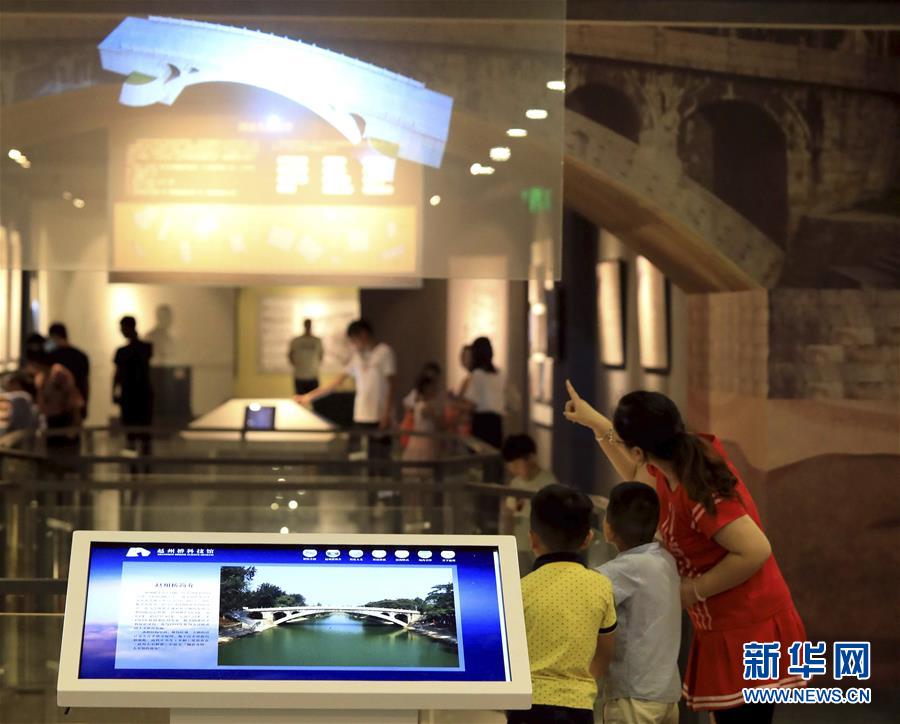 8月24日,游客在河北赵县赵州桥科技馆观看赵州桥相关知识的视频。新华社发(梁子栋 摄)