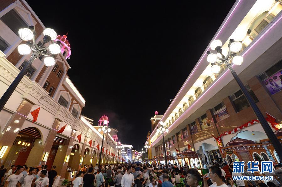 8月20日拍摄的乌鲁木齐二道桥大巴扎步行街美食街区夜市。