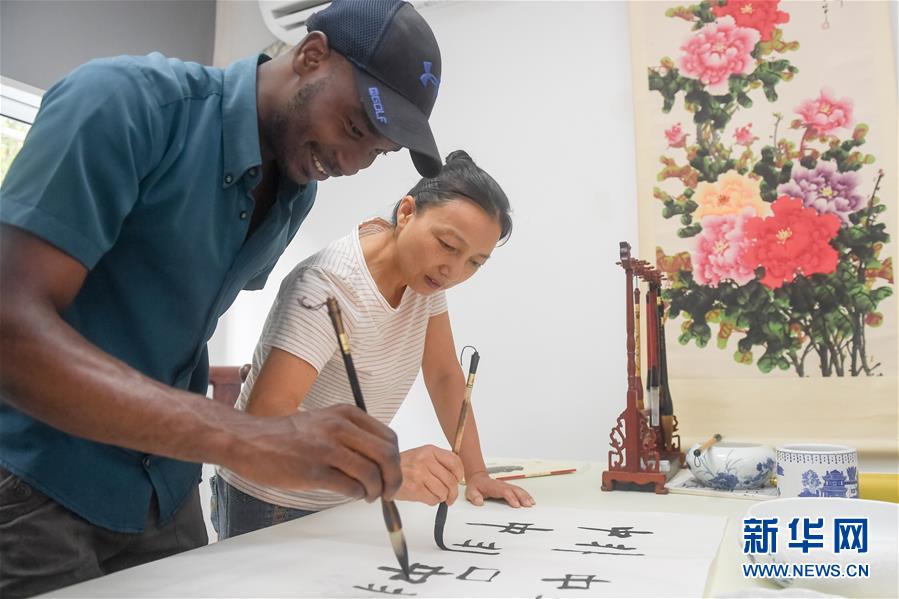 当日,安徽省合肥市奥林花园社区开展中外文化交流活动,来自安徽农业大学的两名非洲留学生在文艺爱好者的指导下学习书法和舞蹈,加深对中国文化的了解。