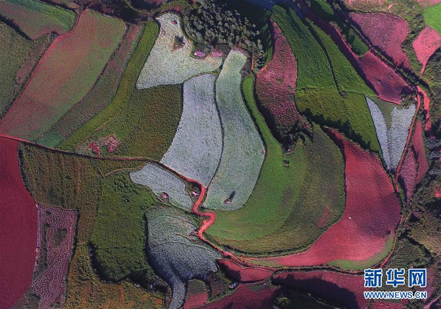 东川红土地景色(8月29日无人机拍摄)。 入秋以来,位于云南省昆明市东川区的红土地五彩斑斓,绚丽多姿。 新华社记者杨宗友摄