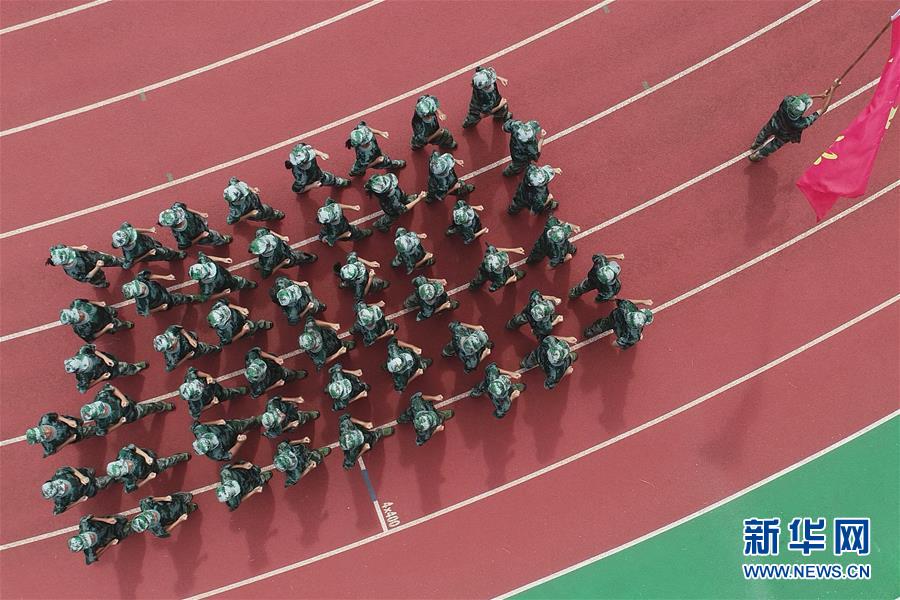 8月28日,新生在湖南省湘西土家族苗族自治州民族中学参加军训(无人机拍摄)。 新学期在即,各地学校组织学生进行军事训练活动,强健体魄,磨炼意志。 新华社发(彭彪 摄)