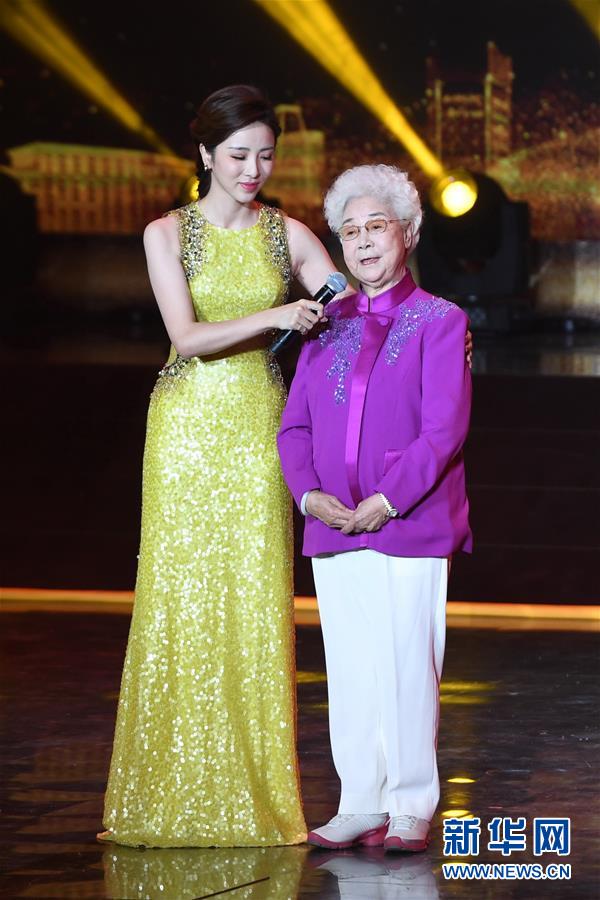 9月1日,著名电影表演艺术家田华(右)在开幕式上致辞。 当晚,第十四届中国长春电影节在吉林省长春市开幕。本届电影节期间将举办“金鹿奖”最佳故事片等10项评奖、影片展映、老影人回家、电影论坛等系列活动。 新华社记者 张楠摄