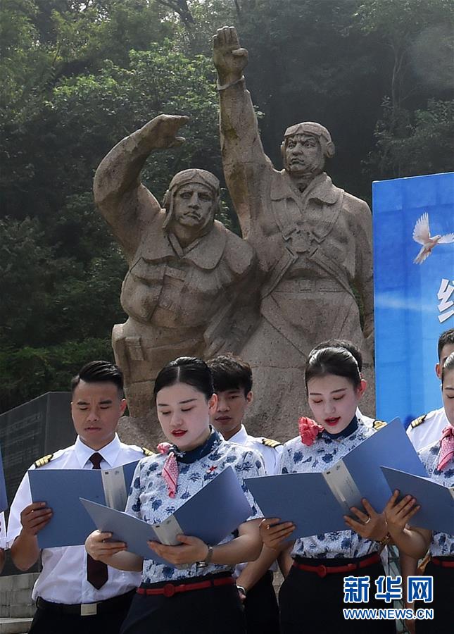 9月3日,航空从业人员代表在活动现场诵读诗文。当日,纪念中国人民抗日战争胜利73周年诵读活动在南京抗日航空烈士纪念碑广场举行,社会各界人士及烈士亲属代表等200多人在活动现场凭吊中外抗日烈士,诵读诗文,表达对烈士的缅怀与崇敬之情。新华社记者 孙参 摄