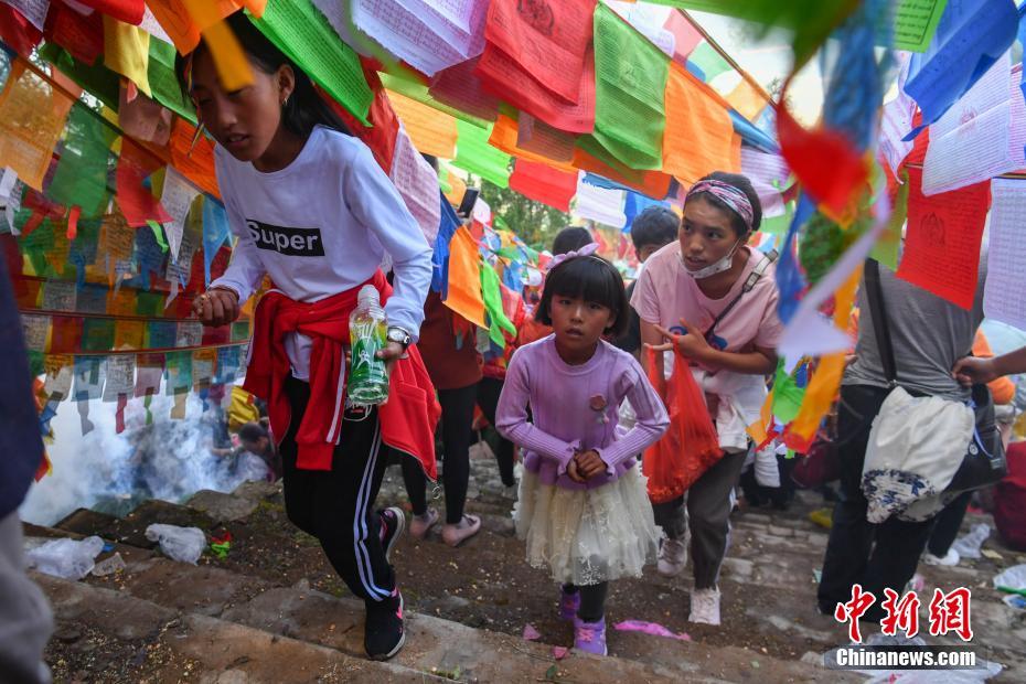 9月4日,摩梭人按照习俗赴女神庙祭拜,祈求平安幸福。当日,摩梭人“转山节”在云南省丽江市宁蒗县泸沽湖边举行。“转山节”流行于云南省宁蒗彝族自治县,是摩梭人朝拜格姆女神山的节日。中新社记者 任东 摄