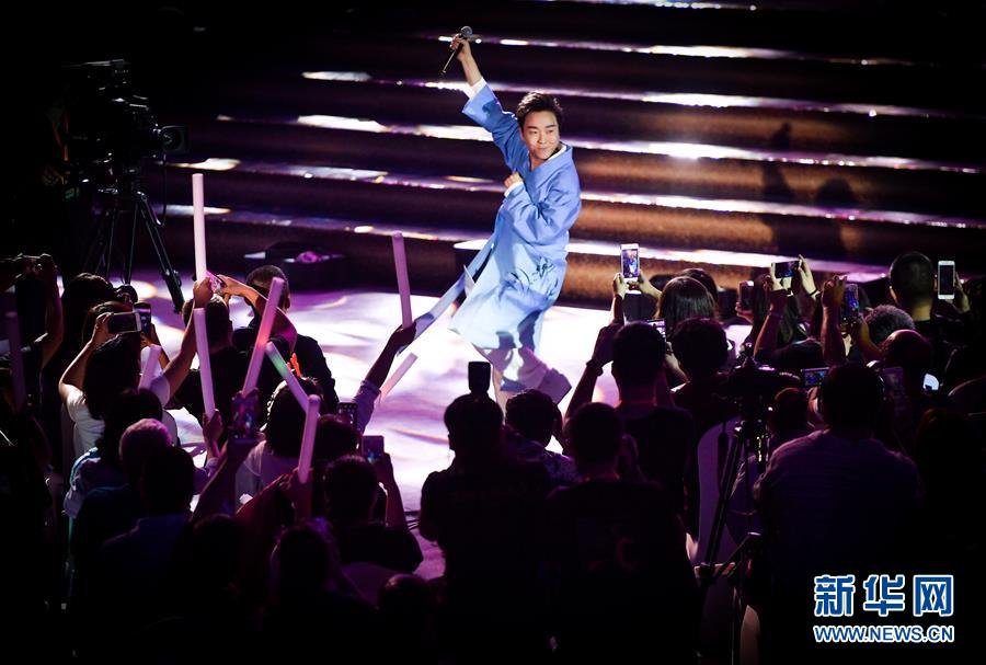 9月4日,歌手李玉刚演唱歌曲《刚好遇见你》。 当晚,第十四届中国长春电影节梦想大典在位于吉林长春的东北师范大学体育馆举行。 新华社记者许畅摄