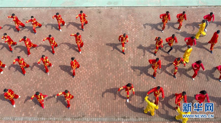 9月5日,在江西新余市渝水区人和乡辉江村,武术研习师和新余学院非洲留学生进行武术交流(无人机拍摄)。 新华社发(赵春亮 摄)