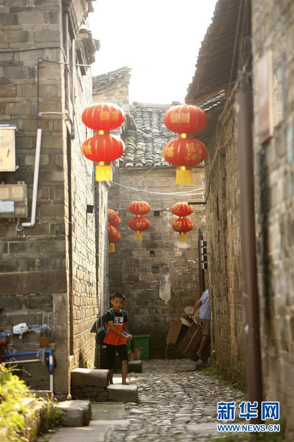 9月5日,一名小学生放学后走在流坑村的巷子里。新华社记者段卓力 摄