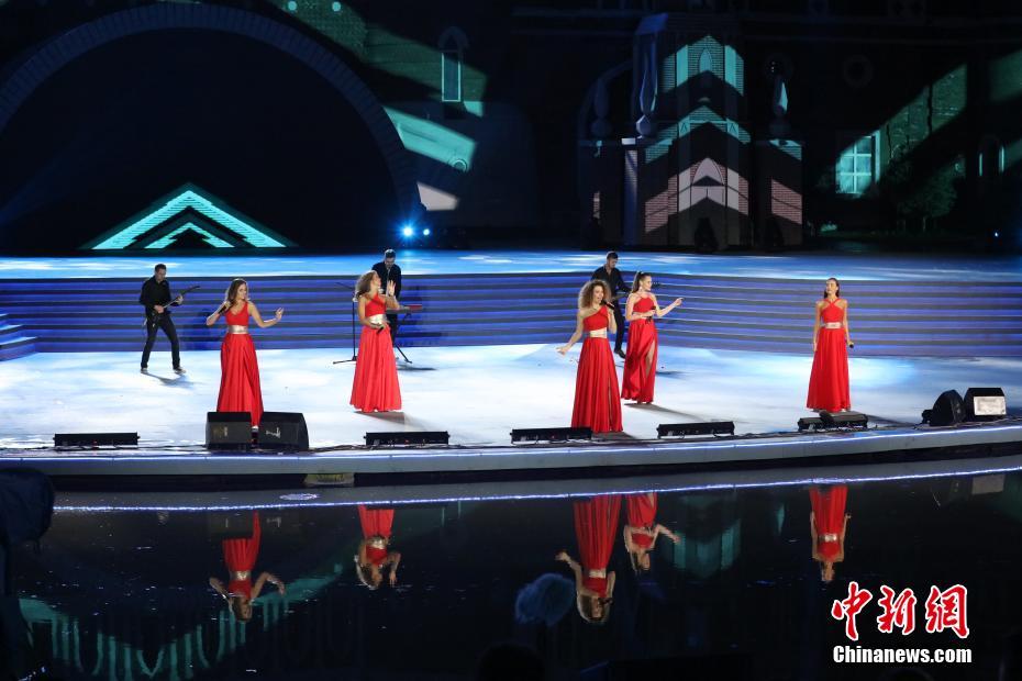 9月6日,2018中俄艺术家大联欢在哈尔滨激情唱响。来自中俄两国的顶尖艺术家同台献艺,将集合了两国文化经典艺术形式的节目完美地呈献给观众。图为图列茨基女子合唱团演唱歌曲《土耳其进行曲》。 中新社记者 于琨 摄