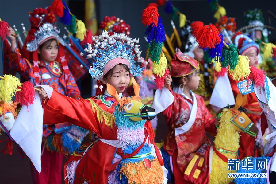 9月7日,孟子小学学生在表演竹马舞。 当日,浙江诸暨市应店街镇孟子小学竹马社团的学生展演竹马舞,增强孩子们传承传统文化的兴趣。竹马舞是当地的非物质文化遗产。今年,孟子小学的竹马舞课程被评为诸暨市义务教育精品拓展性课程。 新华社记者 韩传号 摄