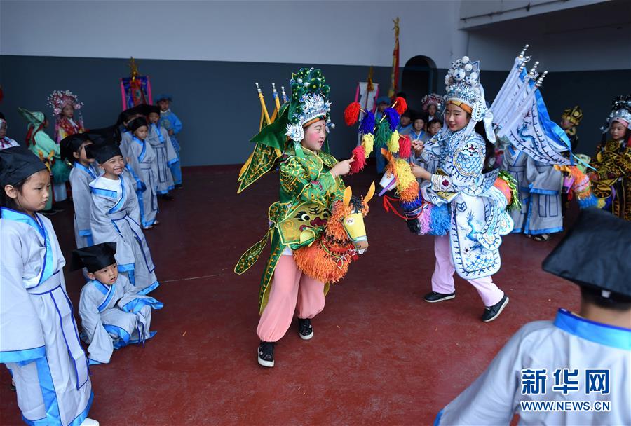 9月7日,孟子小学高年级学生向刚入学的一年级新生演示竹马舞。 当日,浙江诸暨市应店街镇孟子小学竹马社团的学生展演竹马舞,增强孩子们传承传统文化的兴趣。竹马舞是当地的非物质文化遗产。今年,孟子小学的竹马舞课程被评为诸暨市义务教育精品拓展性课程。 新华社记者 韩传号 摄