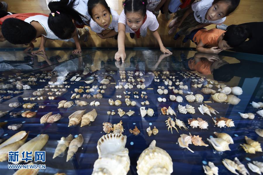 9月7日,学生在“校园博物馆”观看贝壳标本。