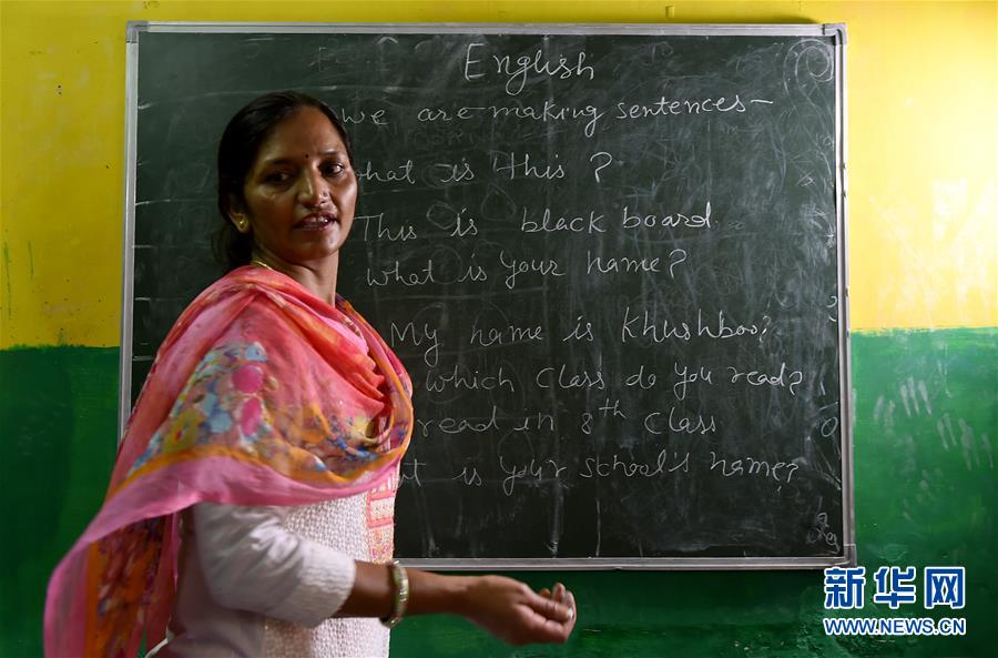 9月8日,在印度首都新德里地区一所社区文化学校,教师在讲英文课。 新华社记者 张迺杰 摄