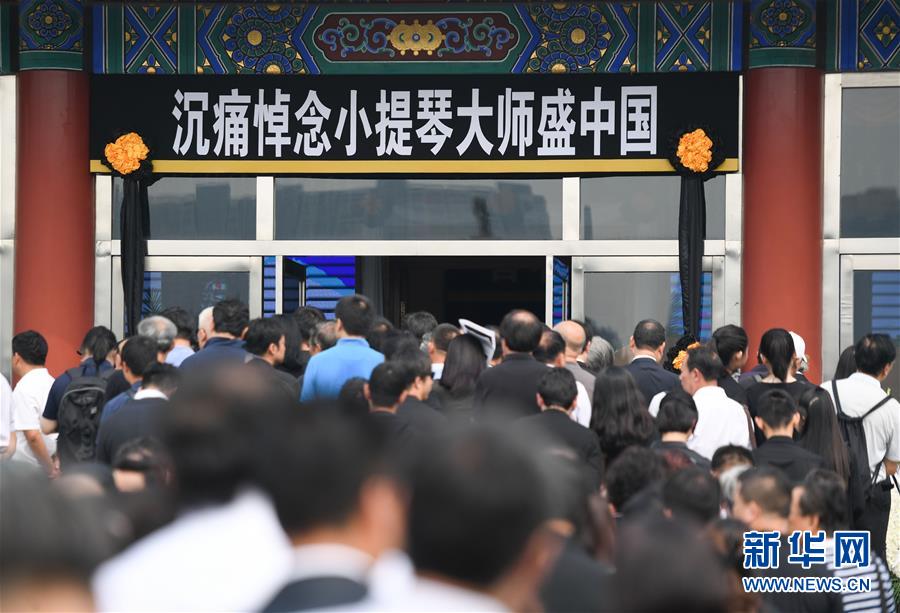 当日,著名小提琴演奏家盛中国遗体告别仪式在北京八宝山殡仪馆东礼堂举行。9月7日晚,盛中国因病逝世,享年77岁。 新华社记者陈晔华摄