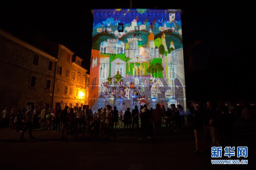 9月13日,在克罗地亚普拉,人们观赏建筑物外墙上展示的光影作品。 为期三天的视觉艺术节13日在克罗地亚普拉开幕,运用3D投影和声光艺术等技术的光影作品将在艺术节期间集中展示。 新华社发(内尔·帕夫莱蒂奇摄)