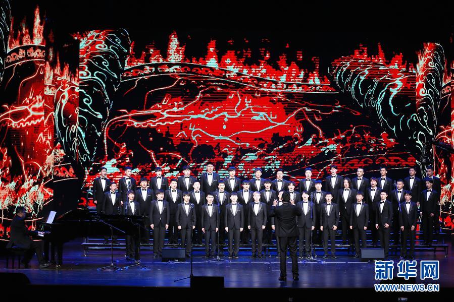 9月14日晚,来自武汉音乐学院的演员在表演《父亲的草原母亲的河》。 新华社发(梁孝鹏 摄)