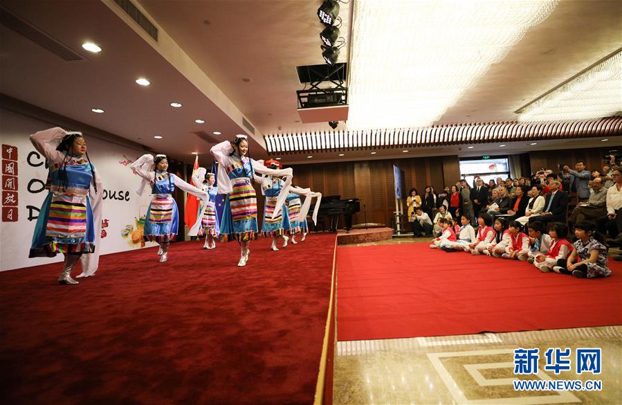 9月15日,在比利时首都布鲁塞尔的中国驻欧盟使团,来宾们观看演出。 新华社记者郑焕松摄