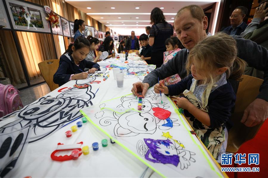 9月15日,在比利时首都布鲁塞尔的中国驻欧盟使团,来宾们在“中国开放日”活动上手绘风筝图案。 新华社记者郑焕松摄