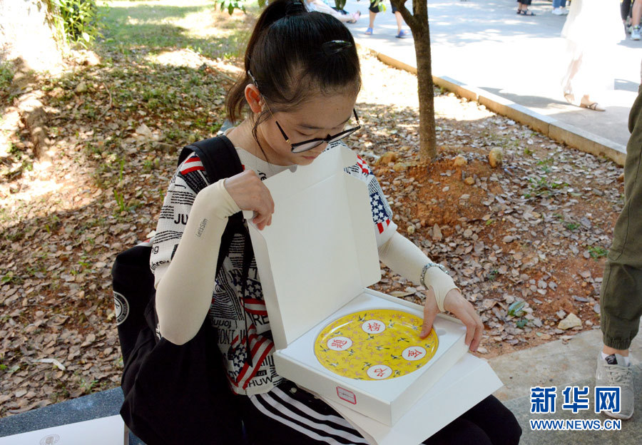端详着手中精致的瓷盘,脸上洋溢着喜悦的笑容,新生们纷纷与自己的瓷盘拍照留念,记录下入学以来的第一份感动。(新华网发 吴伽慧 摄)