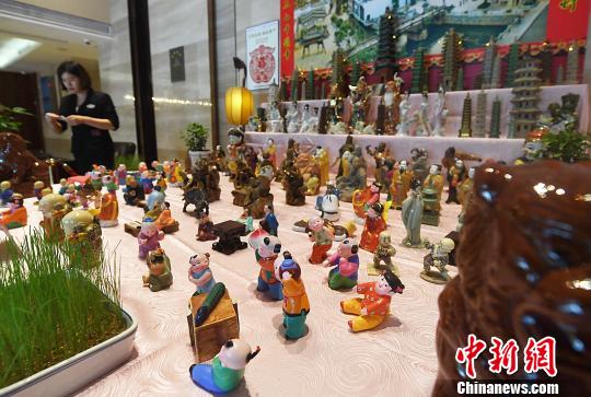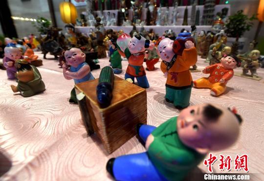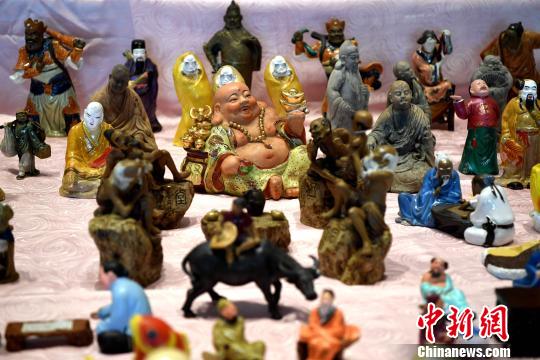 图为形态各异的小泥人亮相中秋“摆塔”活动。 张斌 摄